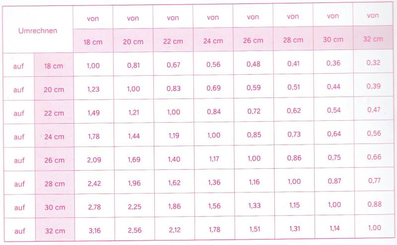 Backform Umrechnung